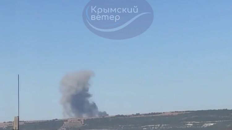 Виден огромный столб дыма на горизонте. По данным пабликов, была атакована воинская часть в районе села Верхнесадовое под Севастополем.