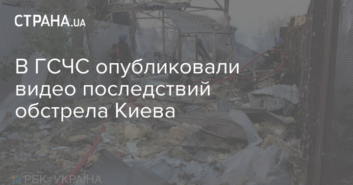 ГСЧС публикует видео последствий обстрела Киева этой ночью.