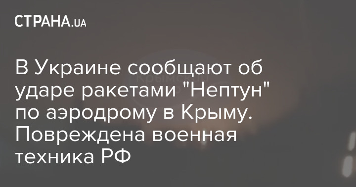 В Украине сообщают об ударе ракетами "Нептун" по аэродрому в Крыму. Повреждена военная техника РФ
