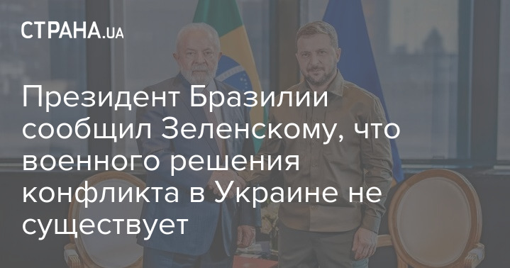 Президент Бразилии Луис Инасиу Лула да Силва заявил Владимиру Зеленскому, что военного решения конфликта в Украине не существует. По мнению бразильского лидера, идеальный путь выхода из ситуации — это прекращение огня и мирные переговоры.