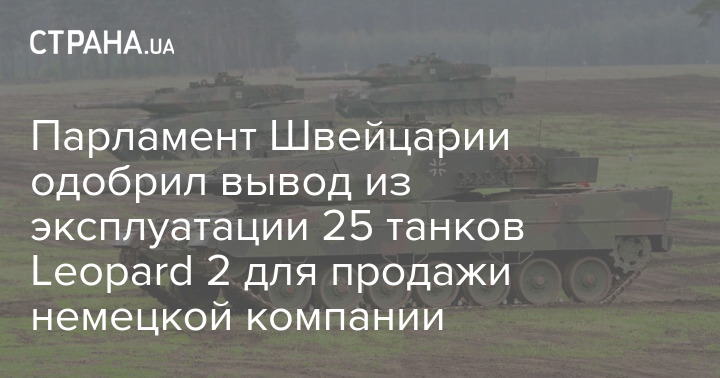 Парламент Швейцарии окончательно одобрил вывод из эксплуатации 25 танков Leopard 2 для дальнейшей продажи немецкой компании Rheinmetall.