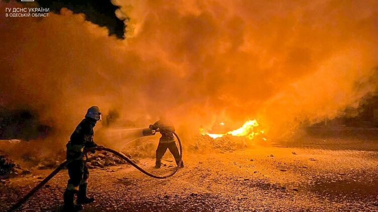Спасатели показали кадры ликвидации пожара в результате российских ударов в Одесской области