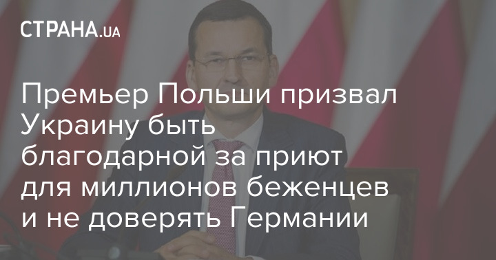 Премьер-министр Польши Матеуш Моравецкий призвал Украину быть благодарной за то, что Польша приютила миллионы украинцев, и не доверять Германии.