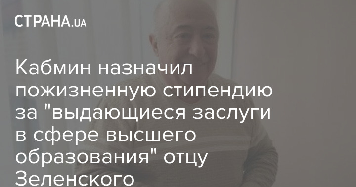 Кабмин назначил пожизненную стипендию за "выдающиеся заслуги в сфере высшего образования" Александру Зеленскому — отцу Владимира Зеленского.