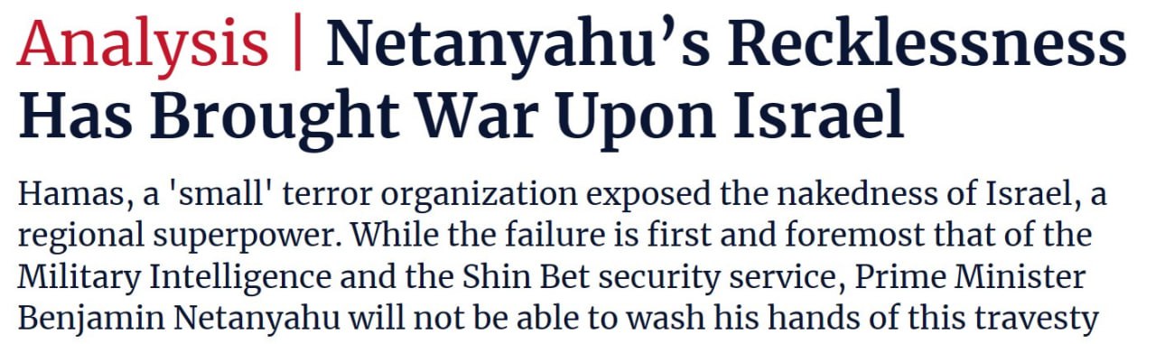 12.15 В израильской прессе появляются вопросы к политическому и военному руководству, почему они оказались застигнуты врасплох вторжением ХАМАС.