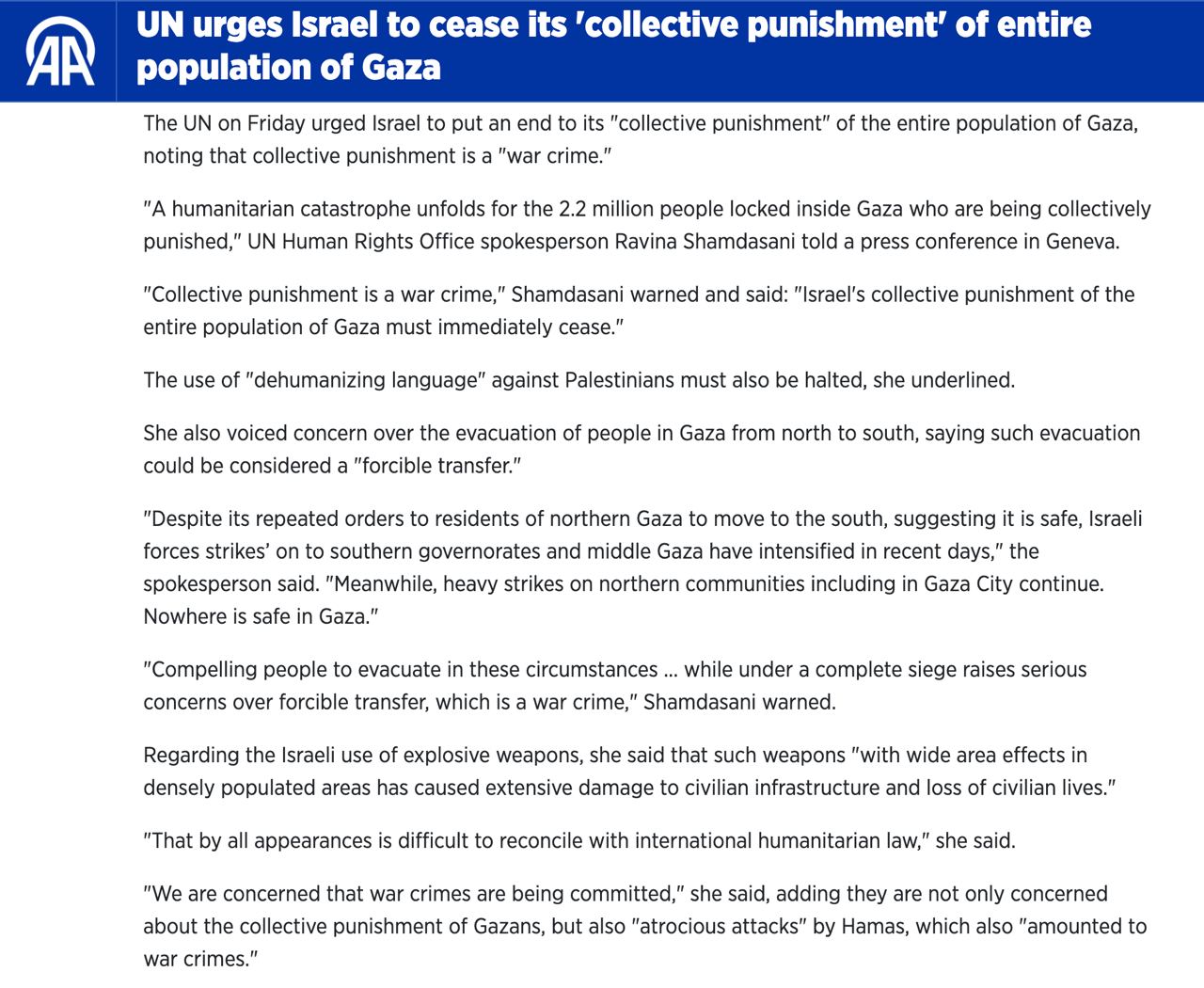 Также в СМИ появился комментарий неназванного израильского чиновника, который заявляет, что «план Израиля по уничтожению ХАМАС выполнен сейчас на 10%».