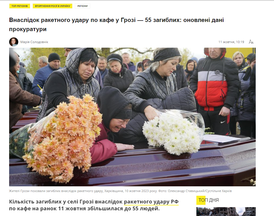 Число погибших в результате ракетного удара по поминкам в Грозе возросло до 55.