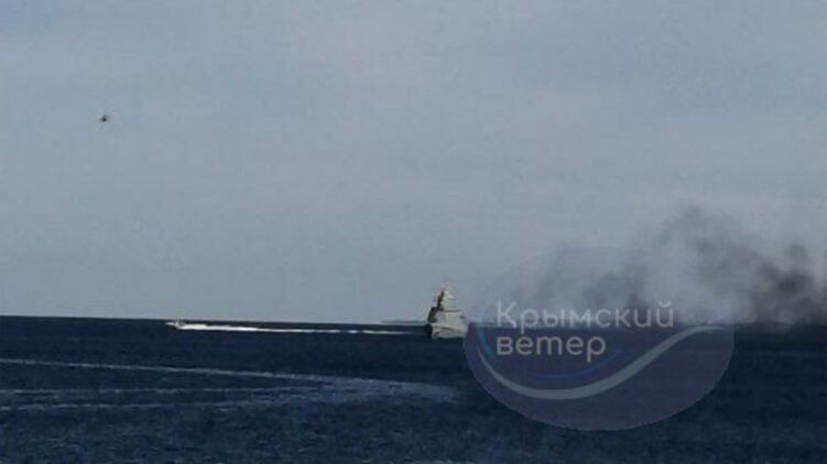 На рейде у Севастополя загорелся российский ракетный корабль. Видео и фото