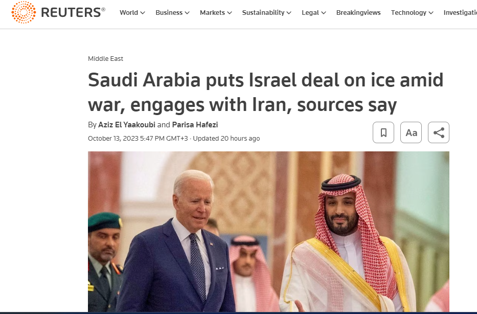 Саудовская Аравия приостановила переговоры о нормализации отношений с Израилем. На данный момент проведение переговоров невозможно.