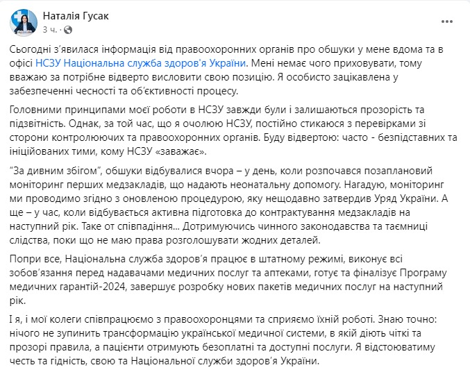 Сама Гусак заявила, что постоянные проверки ее службы "безосновательны и инициированы теми, кому НСЗУ мешает".