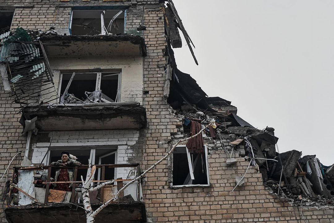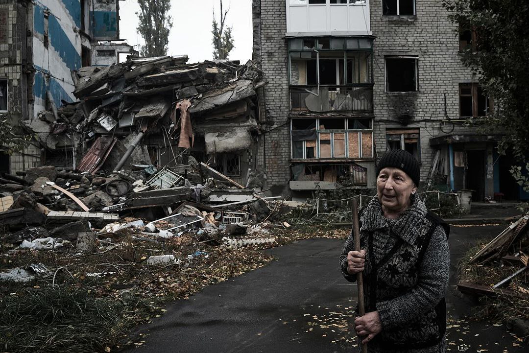 Она продолжает жить в разрушенном доме, несмотря на обстрелы.