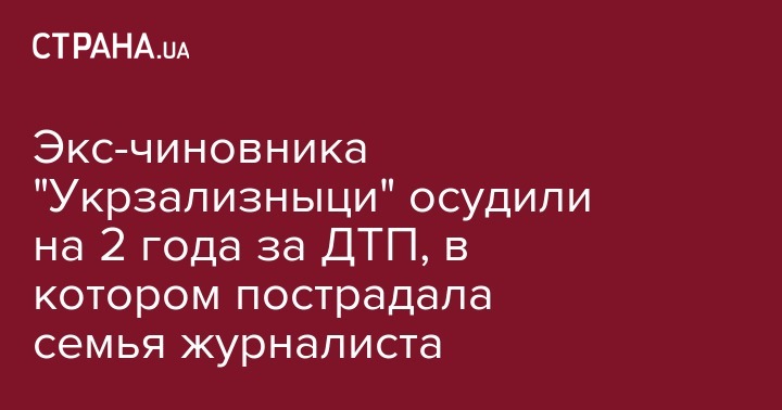 Экс-чиновник "Укрзализныци" Иван Федорко осужден на 2 года за совершенное в июле 2016 ДТП, в котором пострадала жена и сын журналиста. Об этом сообщает пресс-служба ГУ Национальной полиции Киевской области.