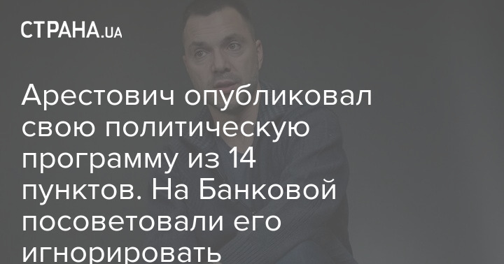 Ушедший в оппозицию к Владимиру Зеленскому бывший советник Офиса президента Алексей Арестович опубликовал свою политическую программу.