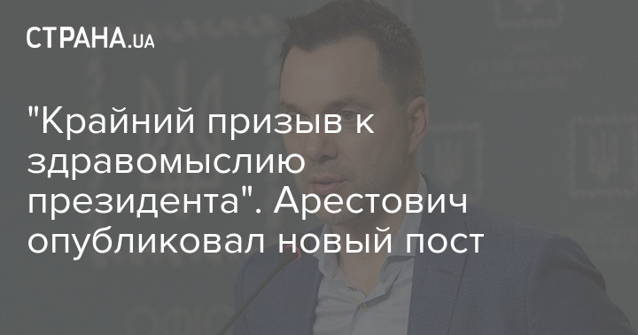 Экс-советник Офиса президента Алексей Арестович опубликовал пост, который подписал как "крайний призыв к здравомыслию президента".