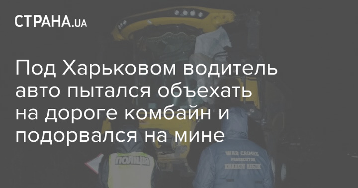 Под Харьковом водитель авто пытался объехать на дороге комбайн и подорвался на мине