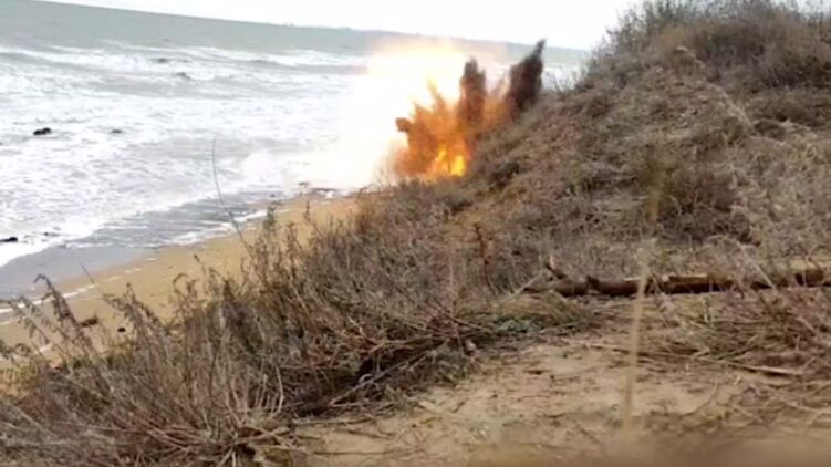 В Одесской области вынесло на побережье очередную противокорабельную мину. Ее уничтожили путем контролируемого подрыва.