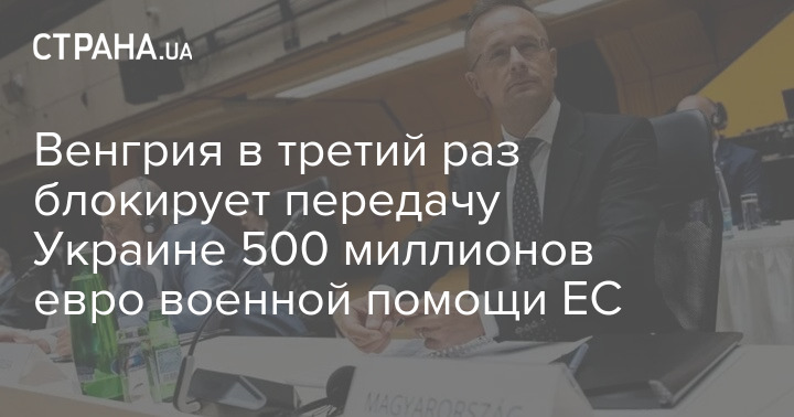 Венгрия снова заблокировала передачу Украине 500 миллионов евро военной помощи Евросоюза.