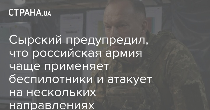 Сырский предупредил, что российская армия чаще применяет беспилотники и атакует на нескольких направлениях