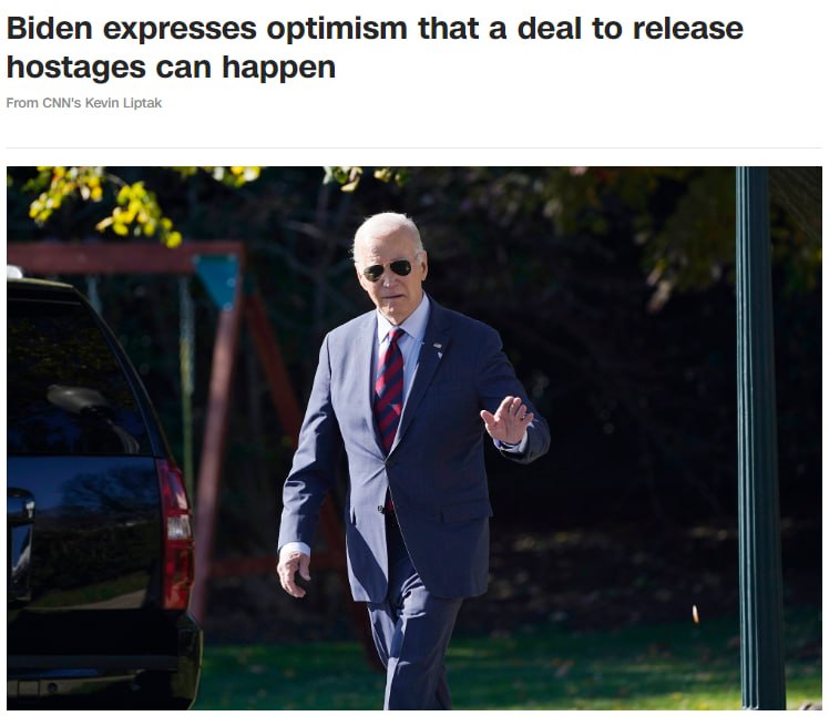 Также президент США Джо Байден заявил, что, по его мнению, может быть достигнуто соглашение об освобождении заложников, захваченных во время нападений ХАМАС на Израиль 7 октября.