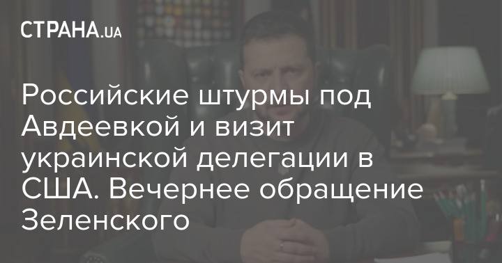 Российские штурмы под Авдеевкой и визит украинской делегации в США. Вечернее обращение Зеленского