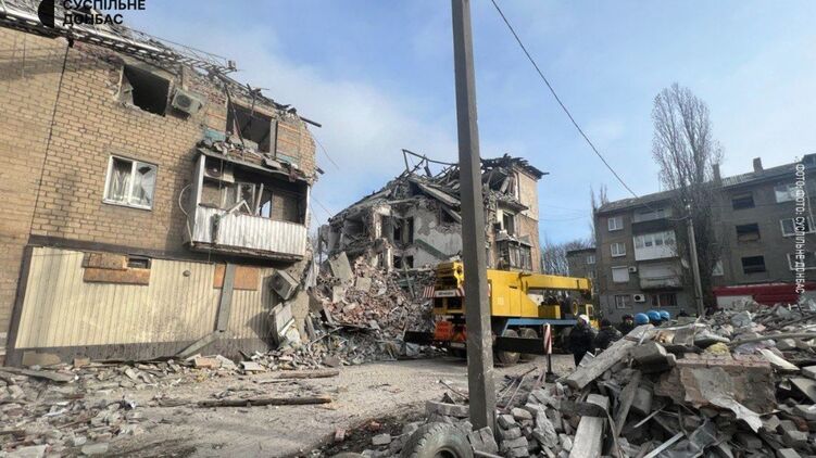Появились новые фото из Селидово Донецкой области, где после ракетного удара РФ ночью частично обрушился 4-этажный дом.