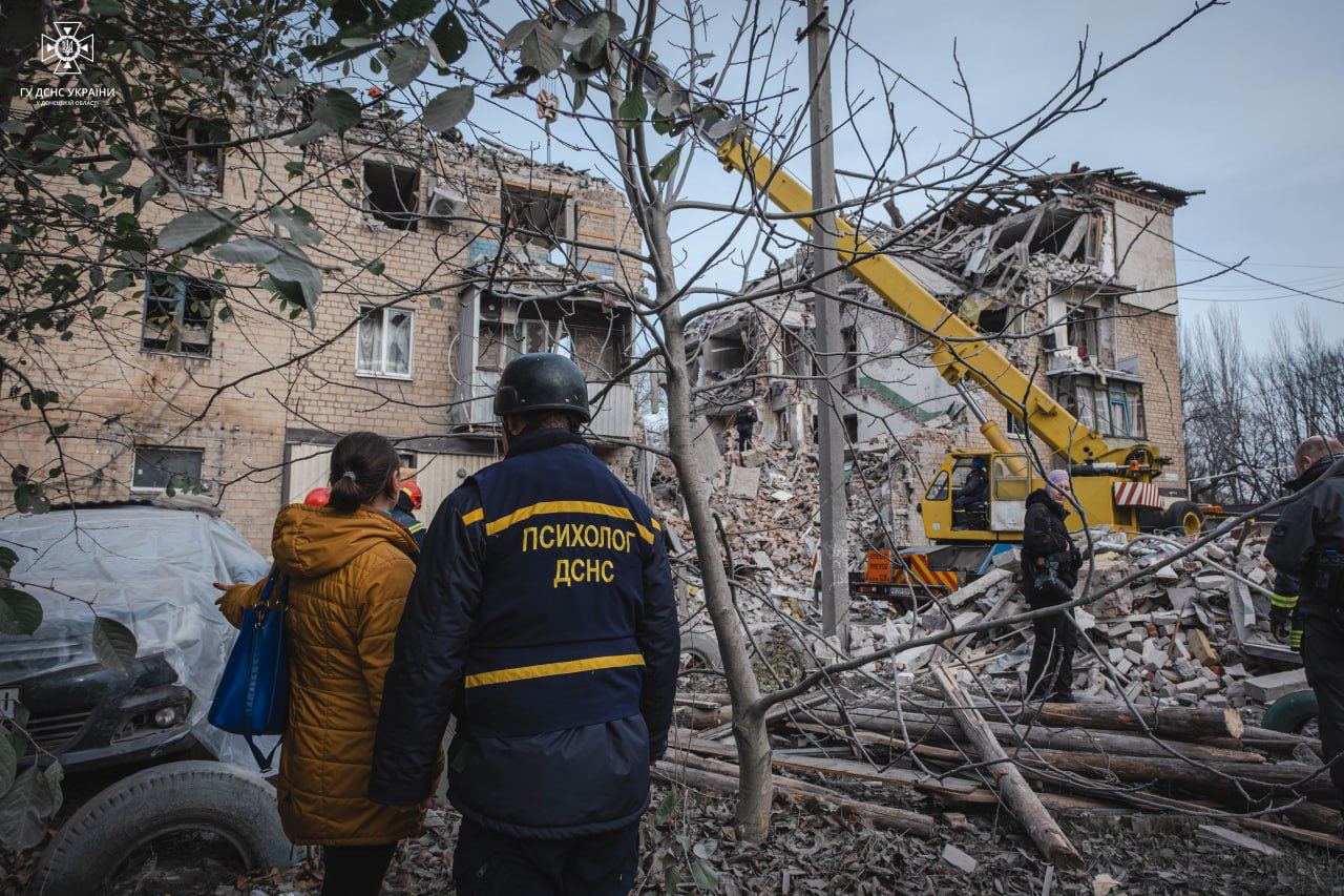 Ранее сообщалось, что в Селидово после ракетного удара обрушился четырехэтажный дом, есть погибшие. На месте обстрела спасатели совместно с полицейскими спасли раненых мужчину и женщину, которых доставили в медицинское учреждение. Также из поврежденной квартиры на четвертом этаже спасатели помогли выбраться трем людям, среди которых и ребенок.