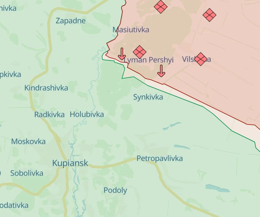 Украинские военные паблики пишут, что в районе Синьковки к северо-востоку россияне берут по 1-2 украинских позиции. Российские телеграм-каналы заявили о продвижении к окраинам Синьковки, где расположен крупный укрепрайон ВСУ (это к северо-востоку от Купянска).