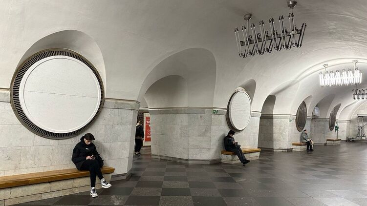 В Киеве на платформе станции метро "Вокзальная" начали работы по маскировке элементов с коммунистической символикой.