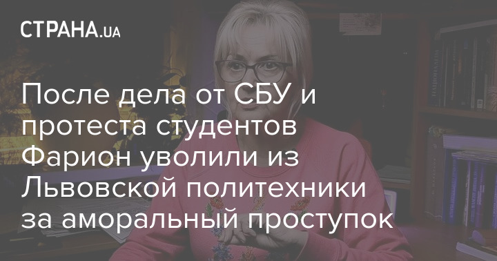 После дела от СБУ и протеста студентов Фарион уволили из Львовской политехники за аморальный проступок