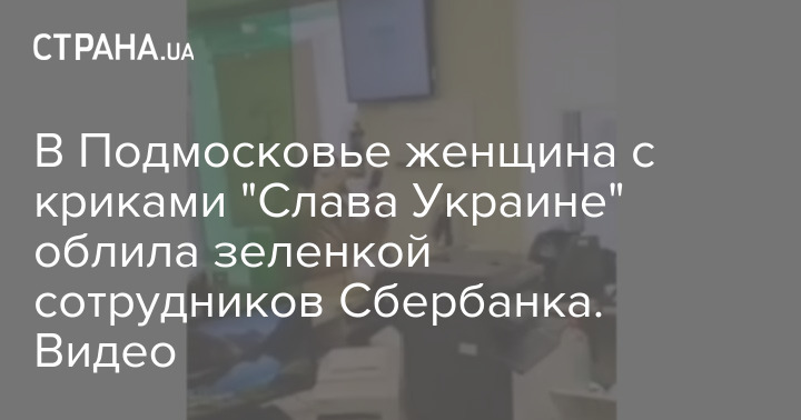 В Подмосковье женщина облила зеленкой сотрудников Сбербанка, после чего с криками "Слава Украине!" и лозунгами за "Азов" пыталась прорваться в окошко.