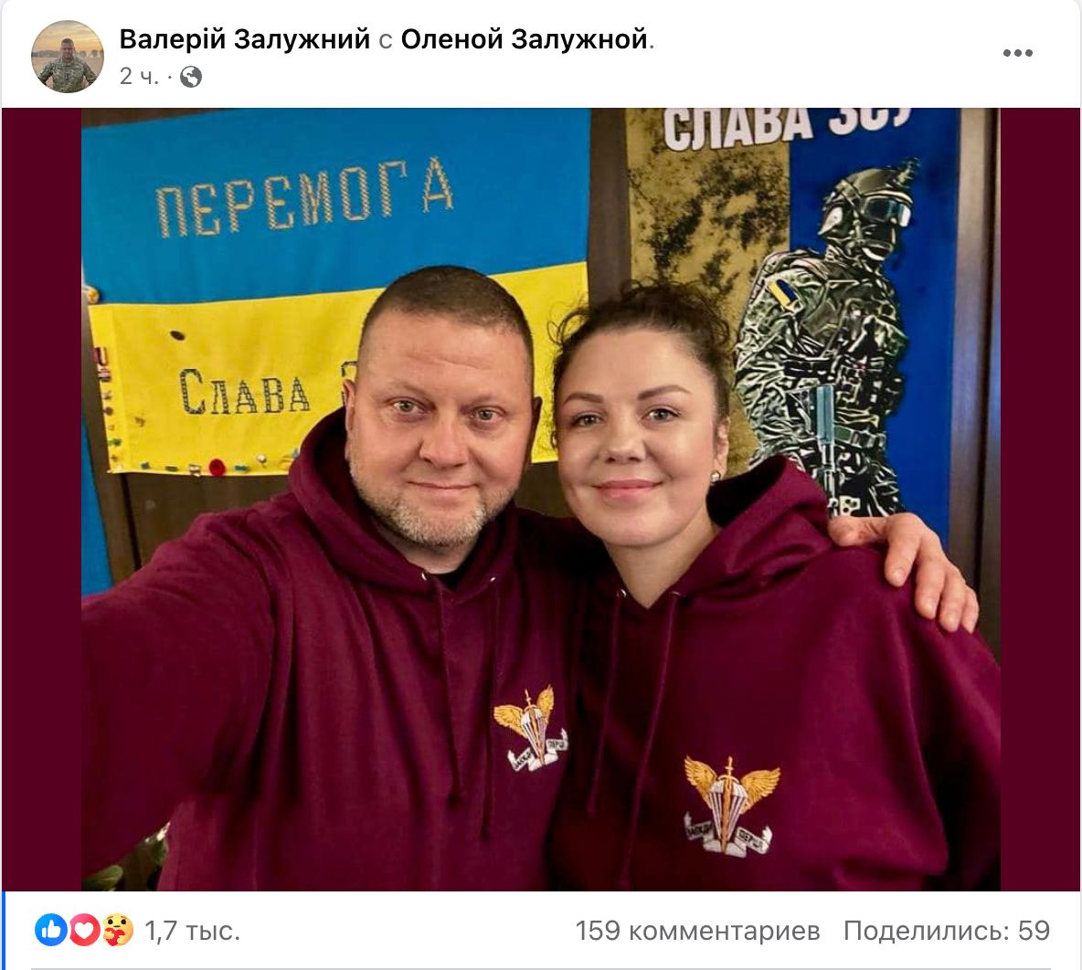 Главнокомандующий ВСУ Валерий Залужный опубликовал совместное фото со своей женой Еленой.