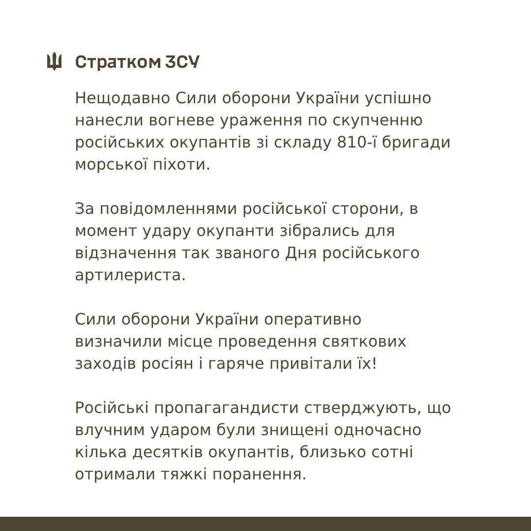 15.32 Стратком ВСУ подтверждает удар по Старобешево, где российские военные собрались на концерт по случаю дня ракетных войск.