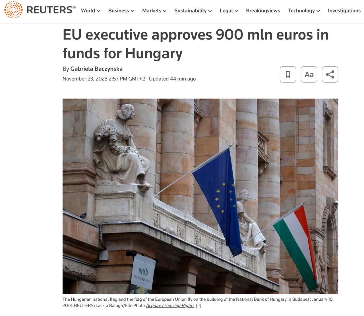 Еврокомиссия пошла на уступки Венгрии и утвердила выделение 900 миллионов евро аванса из ее замороженной доли в европейских фондах восстановления.