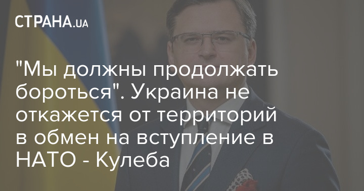 "Мы должны продолжать бороться". Украина не откажется от территорий в обмен на вступление в НАТО - Кулеба