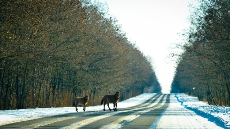 Лошади на дороге. Фото: facebook.com/zapovidnyk2018