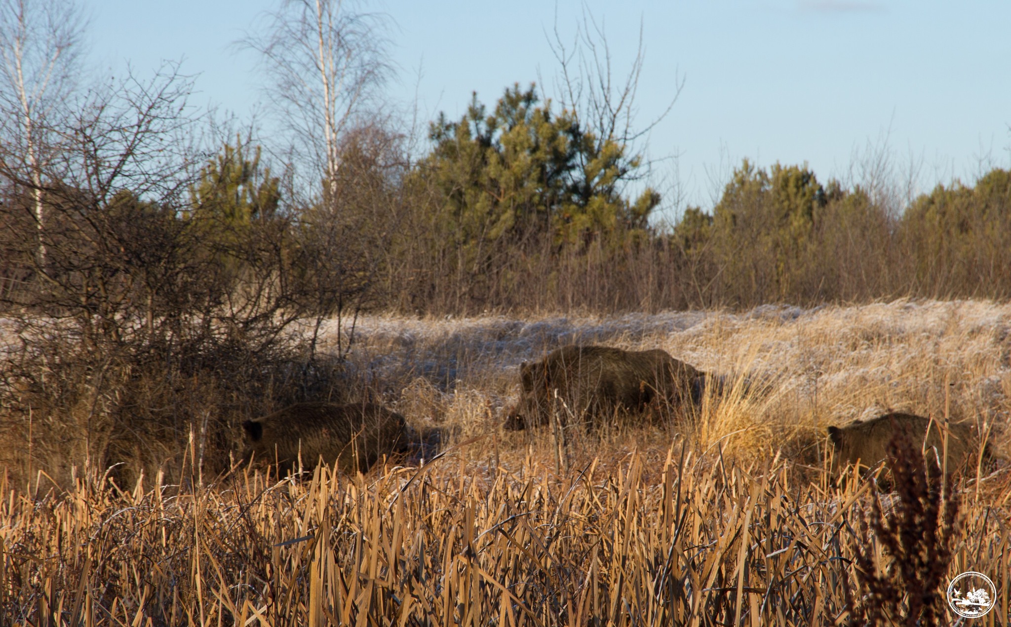 В начале зимы кабаны продолжают накапливать подкожный жир. Среди густых трав заповедника, особенно под дичками фруктовых деревьев, они всегда могут поживиться чем-нибудь полезным и вкусным.