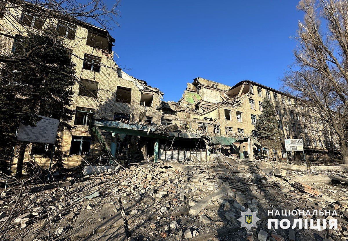 Школа в Селидово после обстрела. Фото: нацполиция