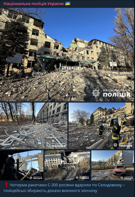 В ночь на 5 декабря, российские военные обстреляли Селидово четырьмя ракетами С-300.