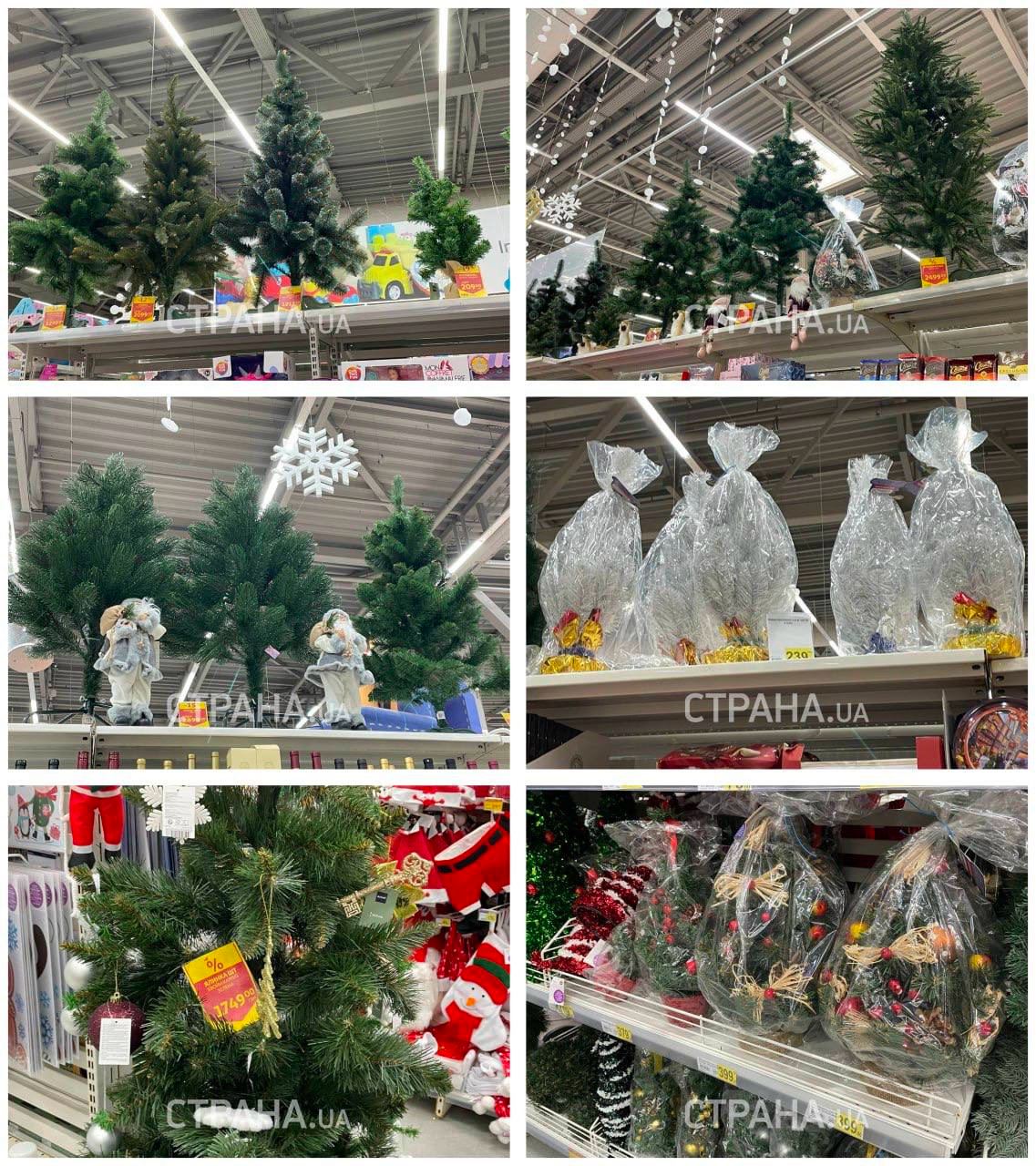 Также искусственные елки появились в магазине "Юск". Правда, здесь выбор искусственных елок очень маленький. На витрине представлены буквально два дерева: одно по сниженной цене (его можно купить за 1000 грн), второе обойдется почти в 3000 грн.