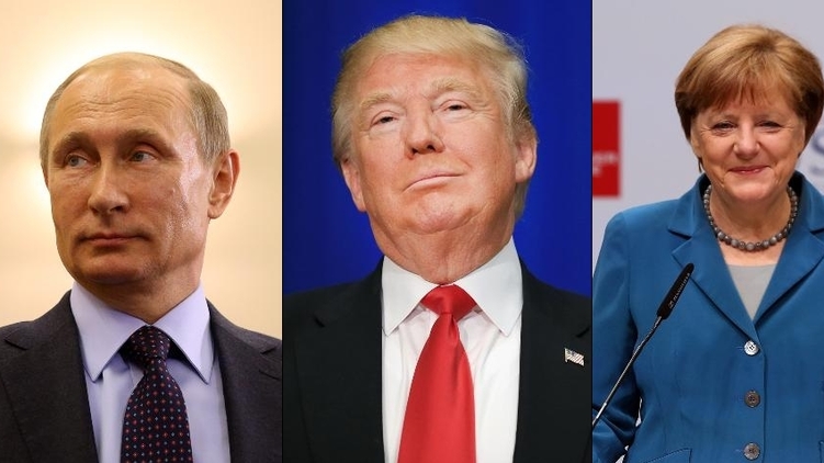 За ним расположился избранный президент США Дональда Трамп и канцлер Германии Ангела Меркель.