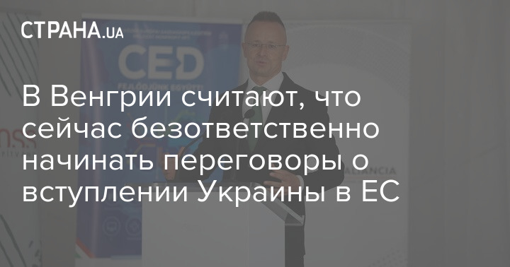 "Нынешний план Еврокомиссии не продуман и не подготовлен. С европейской точки зрения было бы абсолютно безответственно начинать переговоры о вступлении Украины в ЕС. Мы хотели бы чётко заявить, что отвергаем такой подход", – объяснил Сийярто.