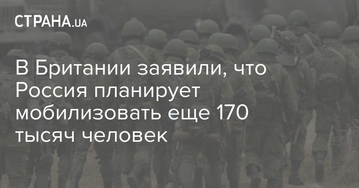Политический координатор Великобритании Фергус Экерсли заявил, что Россия планирует мобилизовать еще 170 тысяч россиян.