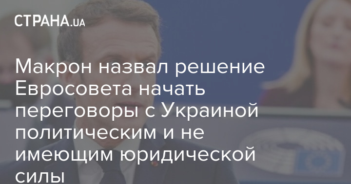 Президент Франции Эмманюэль Макрон, считающий, что Венгрию можно убедить согласиться на выделение Украине помощи в 50 млрд евро, заявил, что решение о начале переговоров Евросоюза с Украиной – лишь политическое и не имеет юридической силы.