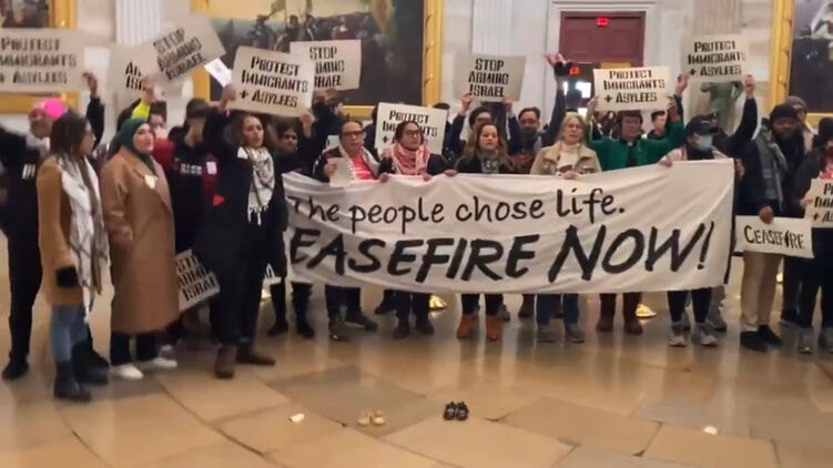 "Люди выбирают жизнь. Немедленное перемирие!" Противники войны в Палестине ворвались в Капитолий США. Видео