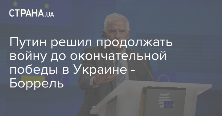 Верховный представитель Европейского союза по иностранным делам и политике безопасности Жозеп Боррель призывает активнее поддерживать Украину. Также он считает, что президент РФ Владимир Путин будет продолжать войну до окончательной победы в Украине.
