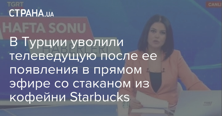 В Турции уволили ведущую программы новостей телеканала TGRT Haber Мельтем Гюнай за появление в прямом эфире со стаканом, на котором был изображен логотип сети американских кофеен Starbucks. Должности лишился и редактор программы.
