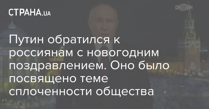 Главной темой новогоднего обращения президента стала сплоченность российского общества.