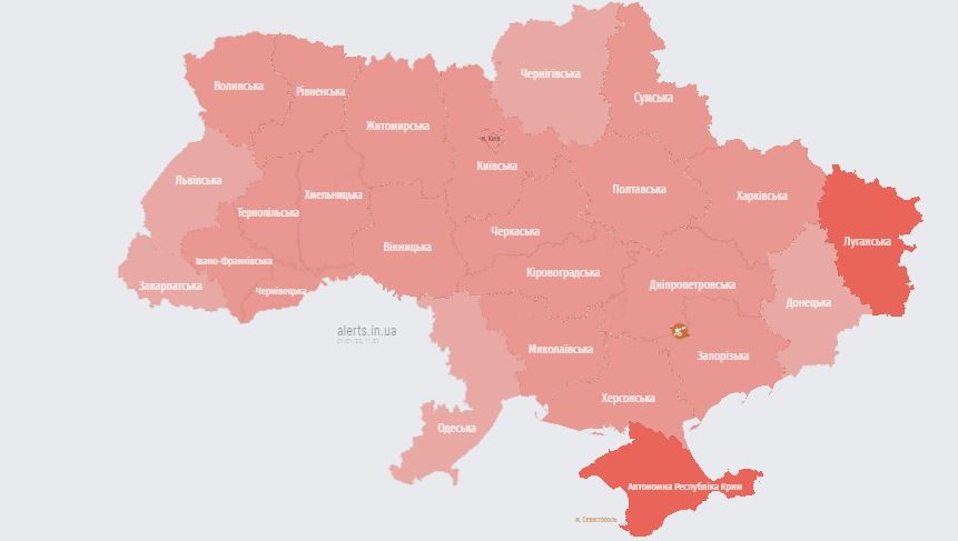 15.33 По всей Украине объявлена воздушная тревога из-за взлетов российских МИГ-31.