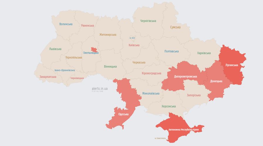 Одновременно Харьковская, Днепропетровская, Запорожская, Донецкая области находятся под угрозой баллистических ударов.