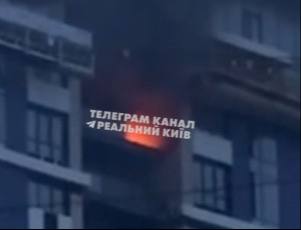 08.43 Кадры пожара в доме на Соломенке в Киеве после прилета.